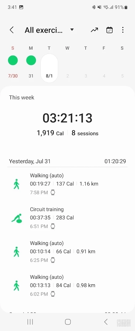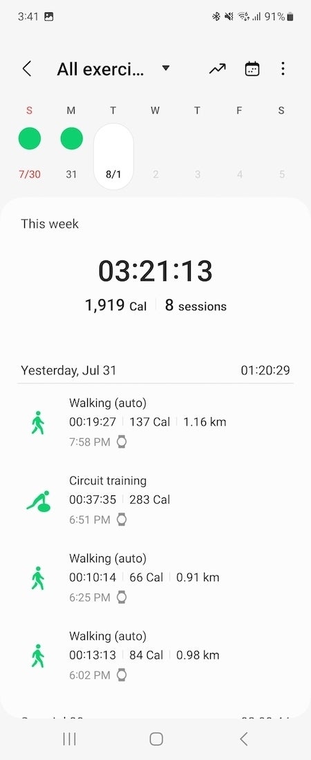 We don't mind manually tracking hard workouts that count, but having to manually record every walk gets very tedious on the Apple Watch, so Samsung is definitely doing the right thing here.