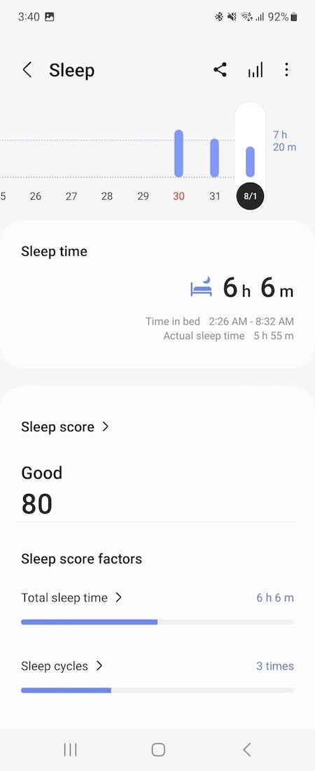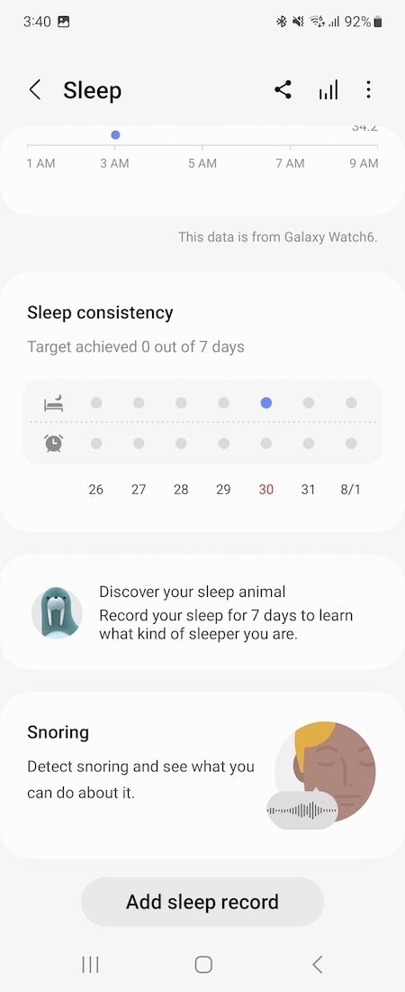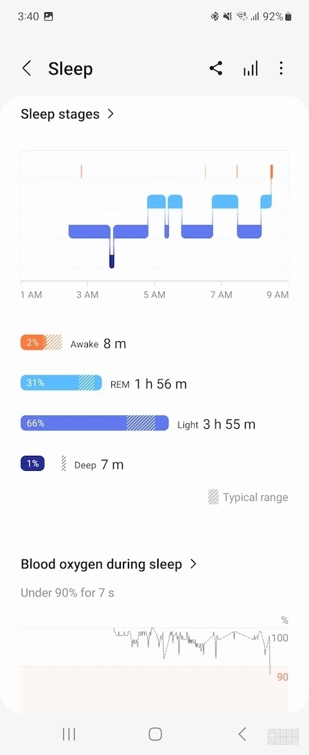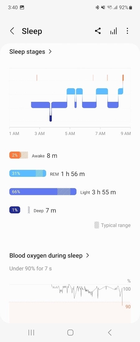 Additionally, the Galaxy Watch 6 recorded worryingly low blood oxygen levels during sleep.