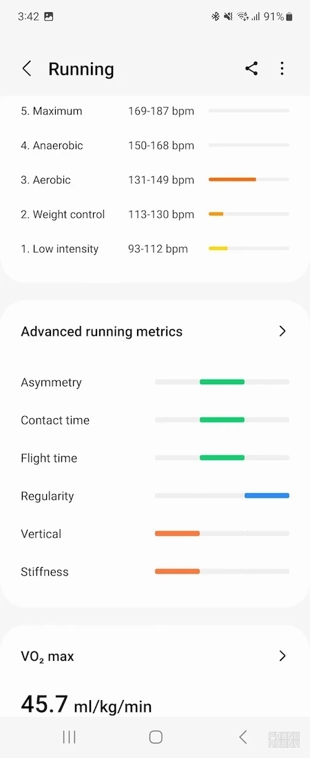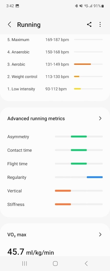The Watch 6 comes with a bunch of new workout tracking features. Probably the one that stands out the most are the personalized heart rate zones, which essentially breaks down your performance across five heart rate zones depending on the intensity of the workout.