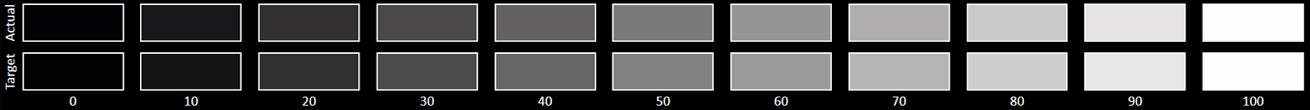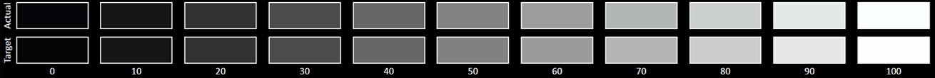 The Grayscale accuracy chart shows whether a display has a correct white balance(balance between red,green and blue)across different levels of grey(from dark to bright).The closer the Actual colors are to the Target ones,the better.