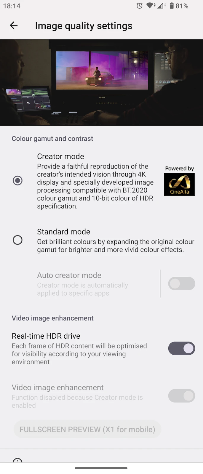 The Xperia 1 V ships with Android 13, obviously, with a very light reskin on top. Mostly for the Sony apps, wallpapers, and the extended settings for screen colors. The rest feels super-stock, Sony got rid of a lot of its proprietary apps over the years.