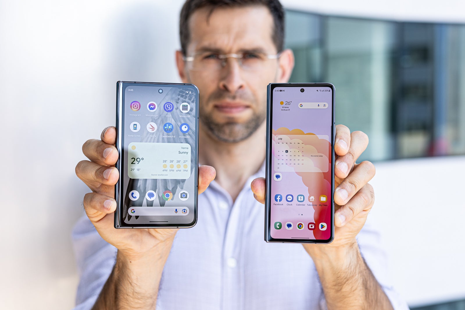But also, we have to remind you that there are compromises compared to a traditional phone, and both these phones have those compromises. Yes, they fold out to a big screen, but also that means that they are thicker than a regular phone when folded (especially the Galaxy) and also... heavy!