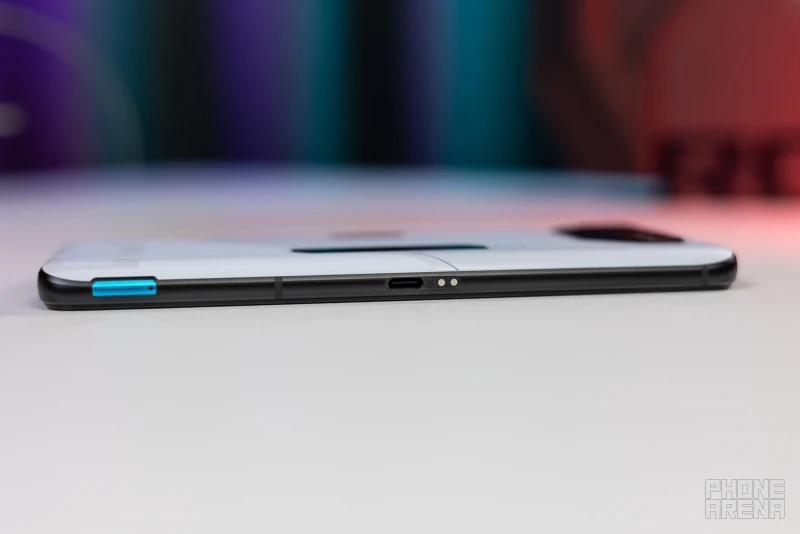 The ROG Phone design simply does not change — it's still got that huge 6.78-inch screen on the front and a meaty top and bottom bezel. The latter are there because they house a pair of excellent-sounding stereo speakers.