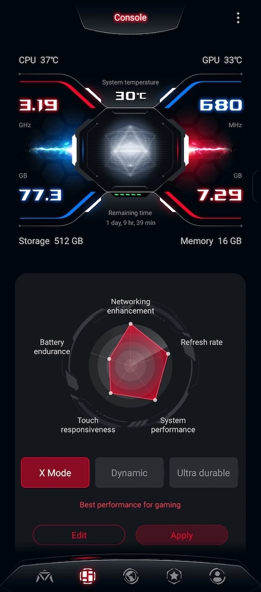 The ROG Phones always come with a few modes of operation — Dynamic, Durable, and X Mode. The first is the default, balanced selection between performance and endurance. The second will throttle performance to give you the best battery life out of that 6,000 mAh capacity. The latter will boost performance to the maximum making full use of the vapor chamber inside and Asus' know-how on keeping things going (though, we do recommend slapping that AeroActive Cooler on it).