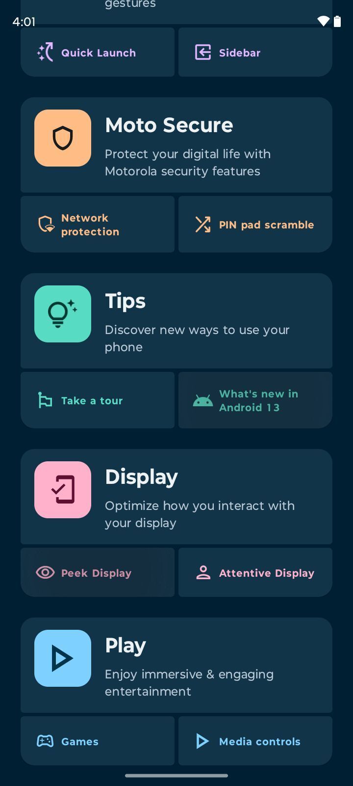 The Motorola Moto G53 comes with a beautiful, near-stock Android 13 experience. What I have always loved about Motorola, however, is its very user-friendly and intuitive Moto app which gives you a well-put explanation of all the features and improvements that came with the latest Android update, but also of the additional ones Motorola has added to the phone's software. There is something nice having one place where you can check out what the phone can do and get quick access to all its special functionalities.