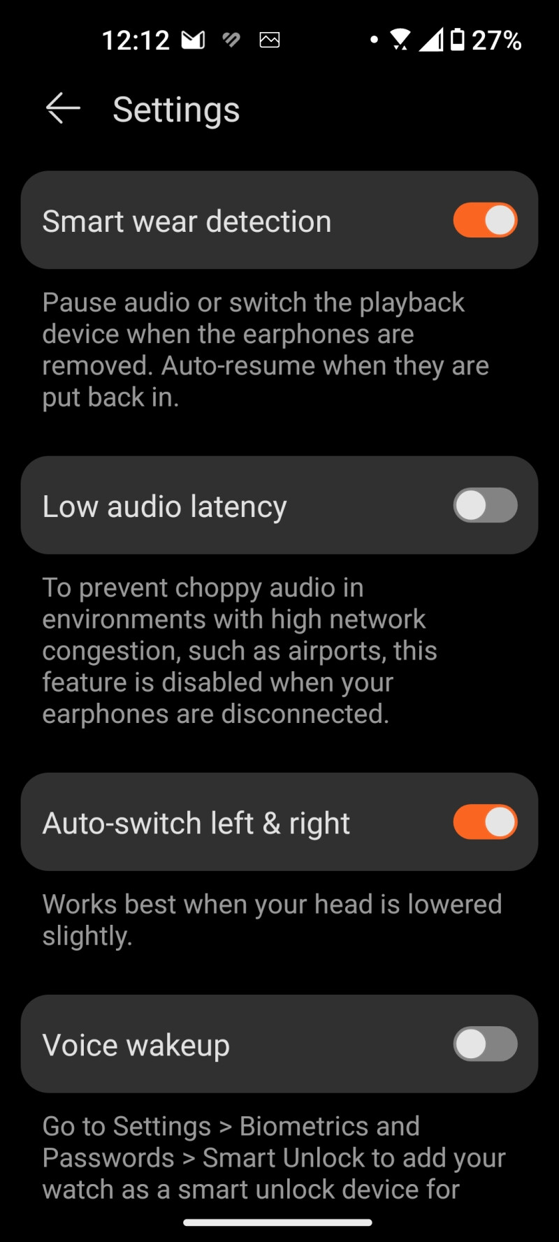 Speaking of noise-canceling, it's not groundbreaking or breathtaking. There's some level of sound suppression, but it's nowhere near industry leading models such as the Sony WF-1000XM4 or even the latest Galaxy Buds. But that's okay, given the size of these. You can cycle through the different modes (noise-canceling, awareness, off) via the watch or by tapping on the buds.