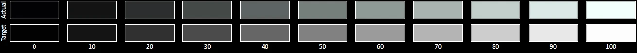 The Grayscale accuracy chart shows whether a display has a correct white balance(balance between red,green and blue)across different levels of grey(from dark to bright).The closer the Actual colors are to the Target ones,the better.