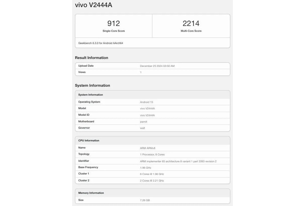 Vivo is gearing up to unveil its latest device, the Y39, which has recently appeared on Geekbench. Achieving scores of 912 in single-core performance and 2,214 in multi-core, it's clear that the Y39 is geared towards the mid-range market rather than high-end performance.