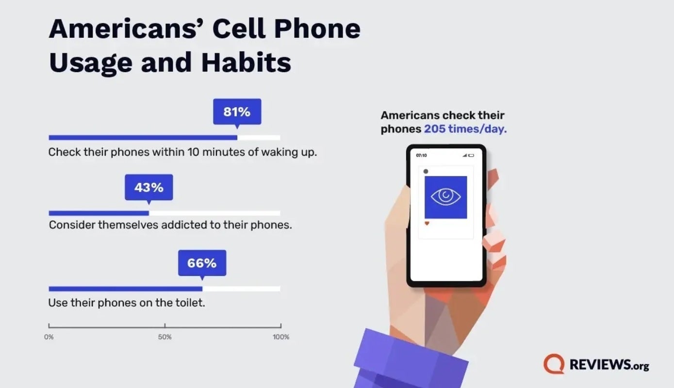 Visual Representation of Smartphone Usage Trends in America | Image credit-Reviews.org
