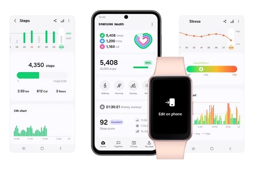 The Galaxy Fit 3 provides users with a wide array of health tracking capabilities. It can monitor sleep patterns, detect snoring, and analyze blood oxygen levels. With personalized Sleep Coaching based on individual sleep data, the tracker aims to enhance users' understanding of their sleep habits.Fitness aficionados can choose from over 100 workout types to track their exercise performance, monitor data, assess progress, and pursue fitness goals. Moreover, it offers detailed health metrics encompassing heart rate and stress levels. For those seeking deeper insights, the Samsung Health app is available as a complimentary download for the Galaxy A16 5G and other compatible Galaxy smartphones.