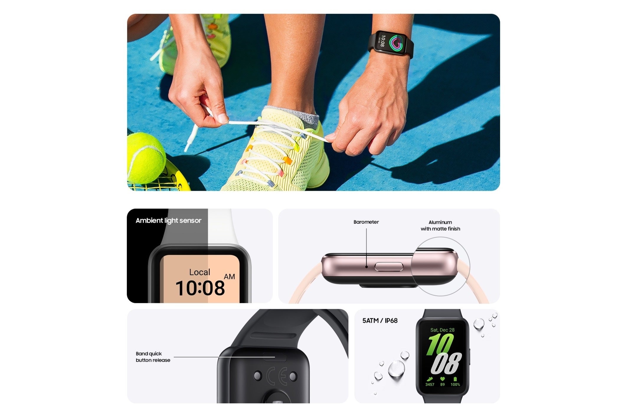 Samsung Galaxy Fit 3 is set to hit the shelves across national retailers, carriers, and Samsung.com, starting from $59.99 on January 9th.The Galaxy Fit 3 boasts a stylish aluminum design accompanied by a substantial 1.6-inch display that is 45% larger than its predecessor. This enhanced display offers users the convenience of viewing extensive insights right from their wrists. Designed for comfort over extended periods, its battery can last up to an impressive 13 days and comes in three elegant colors: Gray, Silver, and Pink Gold.
