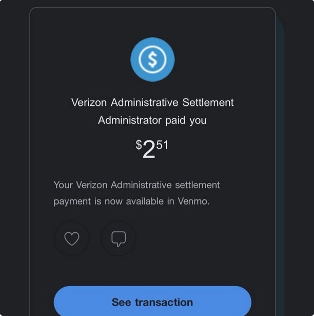 A Verizon customer receives a settlement payment via Venmo. | Image credit-X
