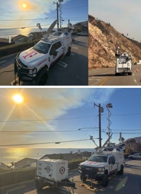 - Satellite Cell on Light Trucks (SatCOLTs) and Satellite Cell on Wheels (SatCOWs) - These mobile cell towers are being dispatched into the affected areas to help restore or enhance service. Currently, SatCOLTs are stationed in Pacific Palisades at Los Angeles Fire Department Station 69 and Loma Alta Park in Altadena.