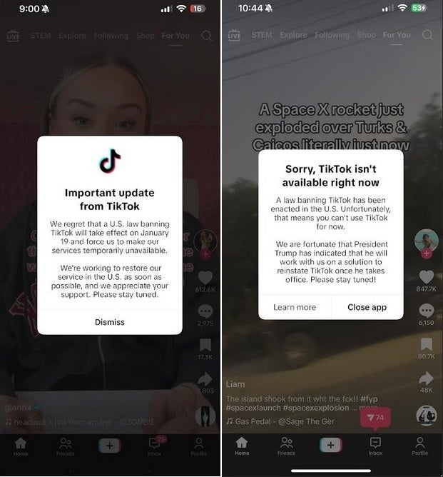 A follow-up message read, "Sorry, TikTok isn't available right now," citing a newly enacted law that prohibits the app's operation in the U.S. The notification expressed appreciation for President Trump’s indication that he would work towards finding a solution to reinstate TikTok once he assumes office. Trump’s upcoming inauguration on Monday has raised hopes for TikTok’s return.