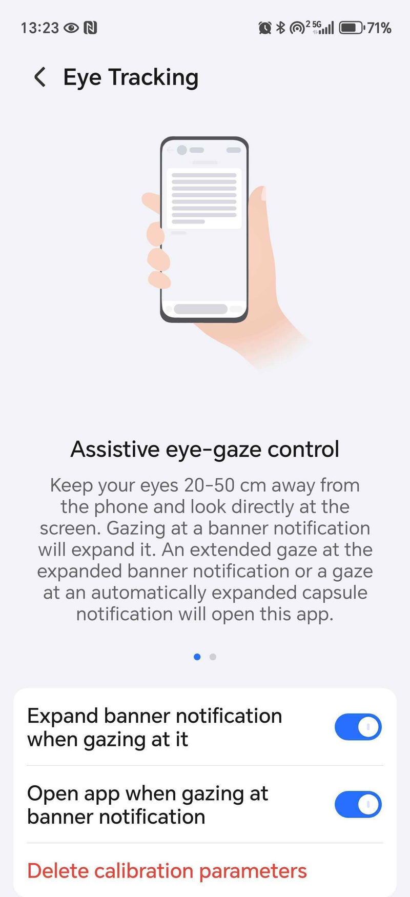 To get started with eye-control, users initially need to calibrate the system by focusing on targets that appear on screen. Once calibrated, notifications can be expanded simply by looking at them; prolonged gazes will result in opening the associated app. While seemingly straightforward, this intuitive method significantly enhances usability.