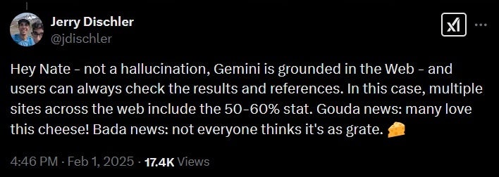 Despite the removal of the misleading statistic, Google continues to assert that the product description for Gouda Cheese was authored by Gemini. Jerry Dischler, President of Google Cloud apps, defended the claim in a tweet, suggesting that the removed statistic should not be categorized as an AI hallucination. “Gemini is grounded in the Web,” he stated.