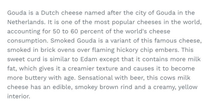 This product description of Gouda cheese was found on a 2000 website, proving that Gemini AI did not write it. | Image credit-The Verge