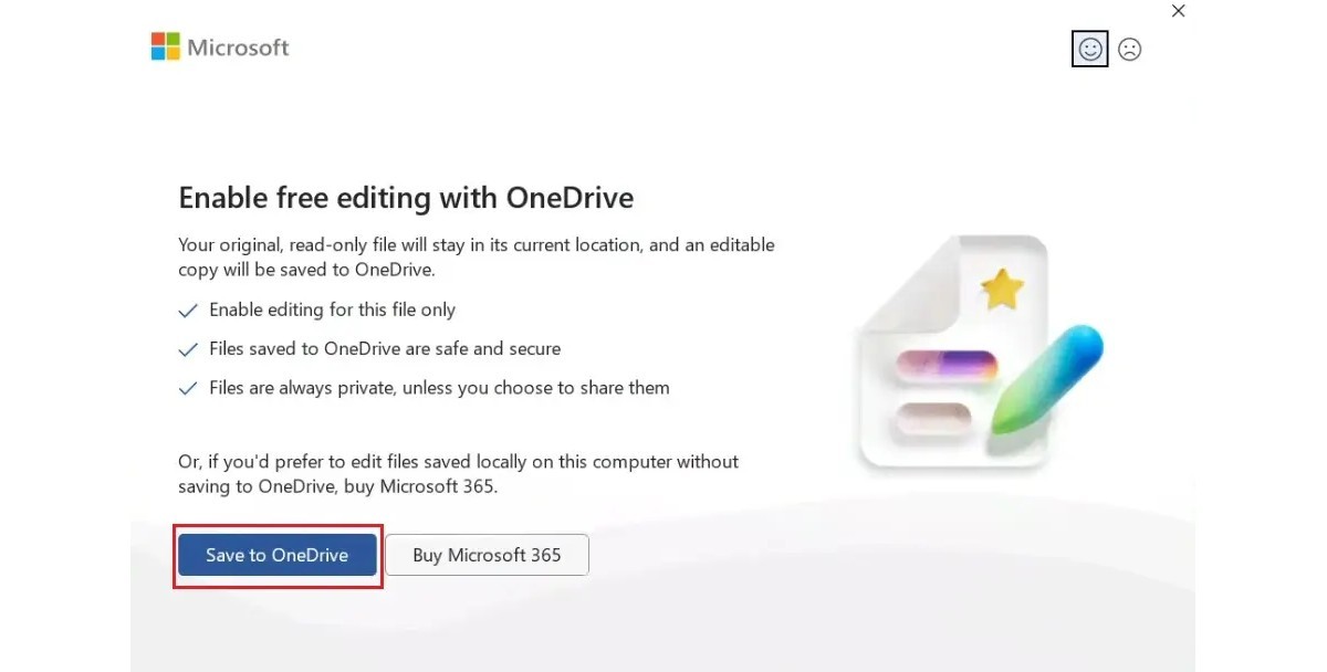 Next, select "Continue for free," and then you must click "Save to OneDrive" when prompted.
