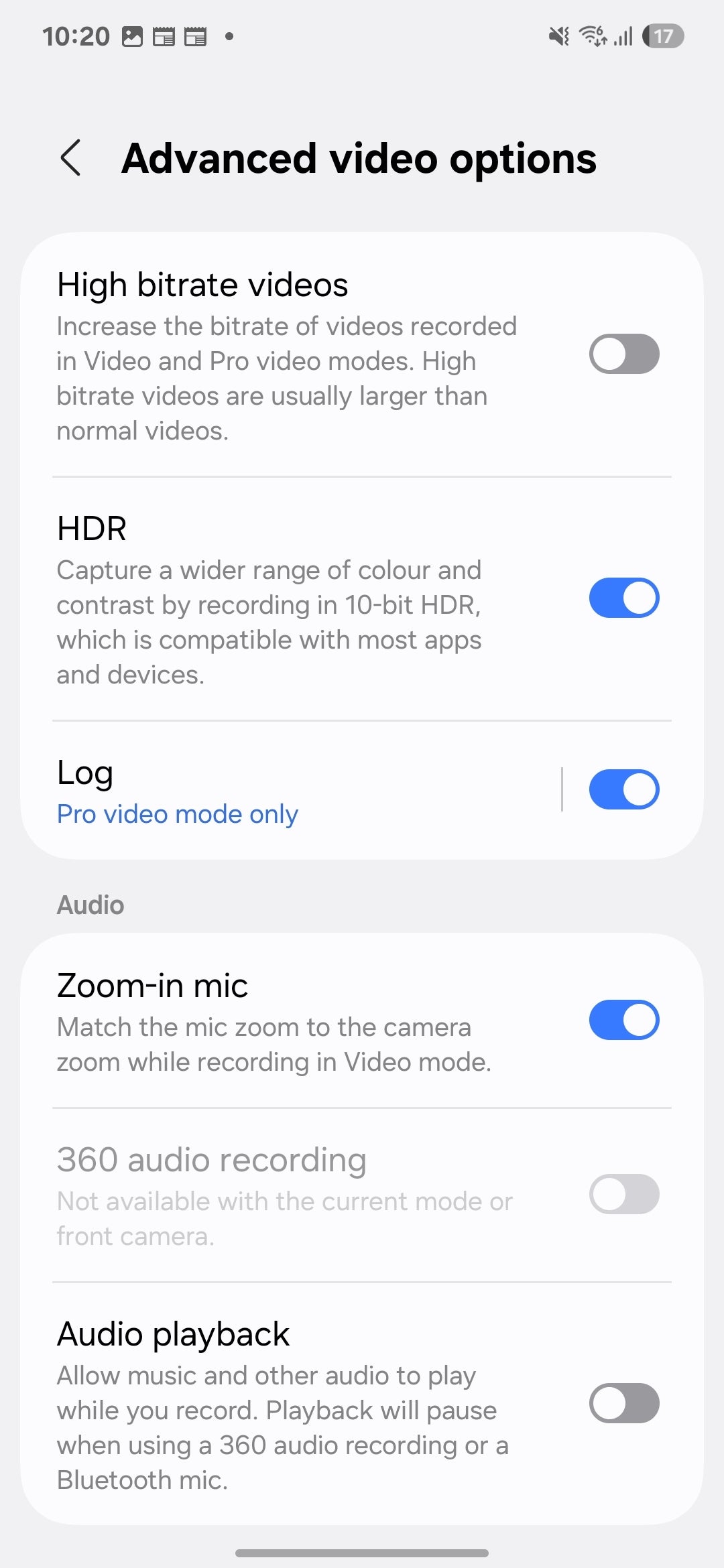 You can access 10-bit HDR in the advanced video settings of the camera app. | Image by PhoneArena