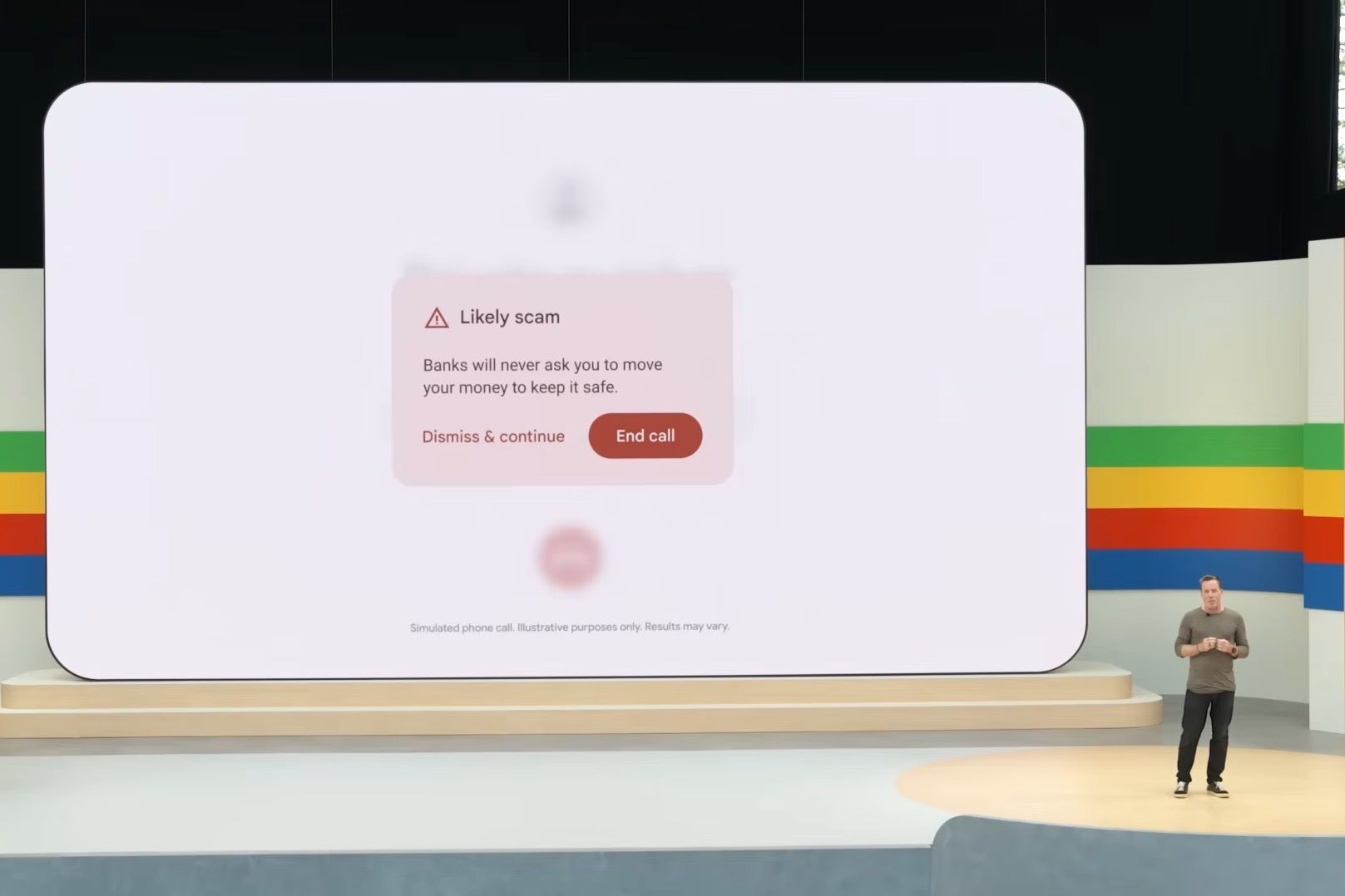 Dave Burke announces the Scam Protection feature at Google I/O 2024. | Image credit — Google YouTube Channel