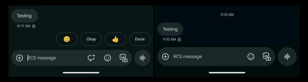 The previous version of the Google Messages text field is shown on the left, while the updated, larger text field is displayed on the right. | Image credit-9to5Google