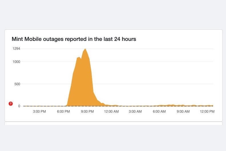Mint Mobile's texting problems were widely reported yesterday afternoon. | Image credit — DownDetector