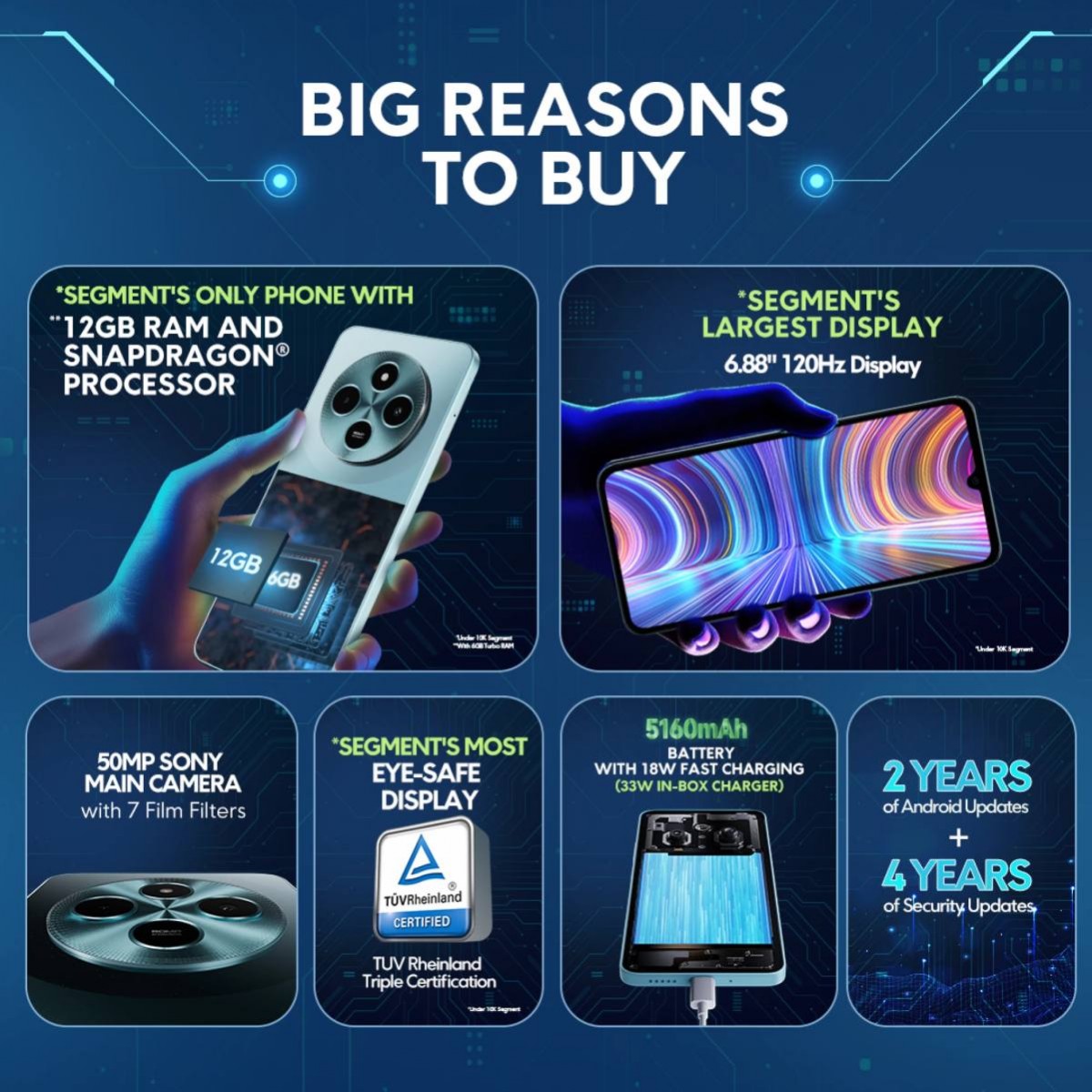 Powered by the Snapdragon 4 Gen 2 chipset, the Poco M7 supports 5G connectivity, ensuring users stay connected at high speeds. The smartphone features a large 6.88-inch LCD display with HD+ resolution and an impressive refresh rate of up to 120 Hz. This display is certified by TUV Rheinland for its low blue light emission and flicker-free performance, making it easier on the eyes during extended use.