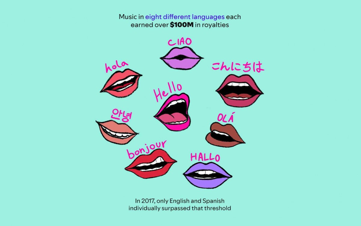 The report notes that music in 17 languages has surpassed the $1 million mark in royalties, while 50 languages have produced artists who earned over $100,000.