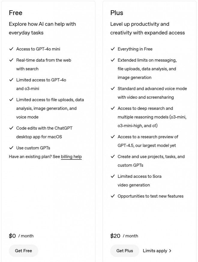 ChatGPT Free plans vs. ChatGPT Plus plan