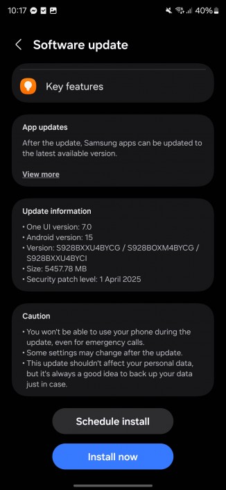 This firmware update, denoted as version S9x8BXXU4BYCG, comes equipped with the April 2025 security patch. Our Galaxy S24 Ultra review unit received an update size exceeding 5GB, featuring an extensive changelog. However, one notable exclusion from this update is the Now Brief feature, which remains exclusive to the Galaxy S25 series. For those interested, a detailed changelog outlining all the new features in One UI 7 is available.