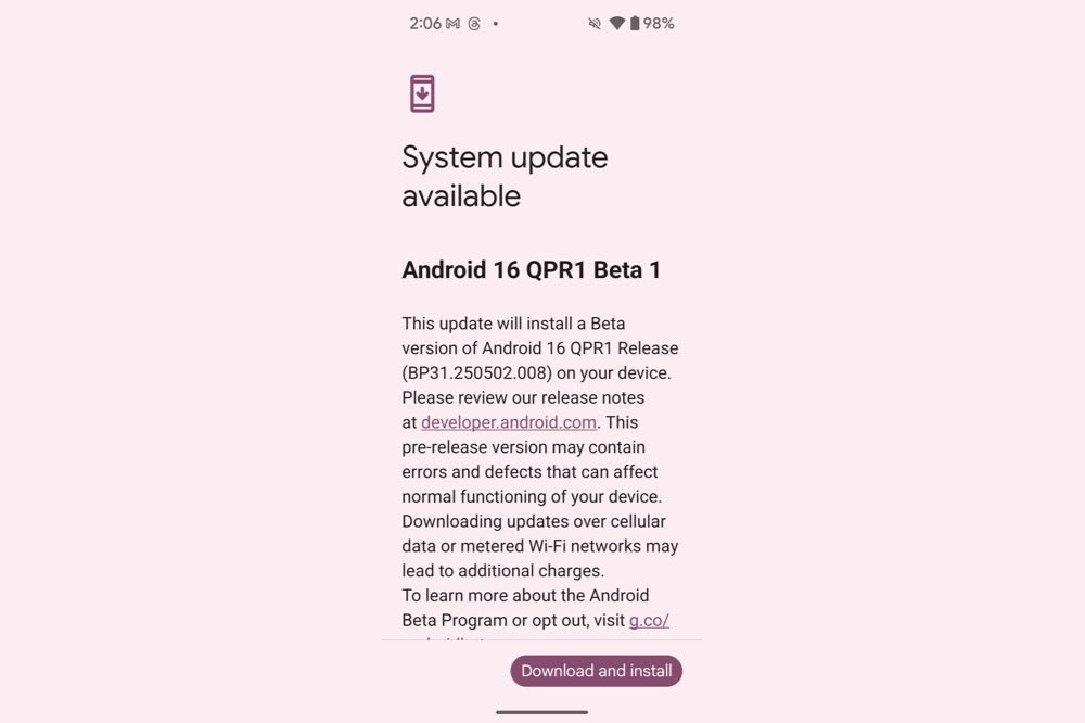 Android 16 QPR1 Beta 1 is now rolling out for beta testers. | Image credit — PhoneArena