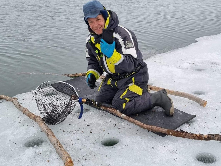 A fishing net was used to retrieve the phone. | Image credit — Samsung