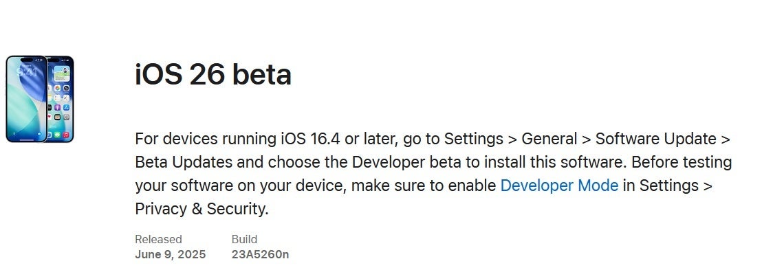 Information on installing the iOS 26 Developer Beta. | Image credit-Apple