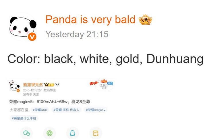 Tipster claims the Honor Magic V5 foldable will sport a new gold color option . | Image credit — Weibo