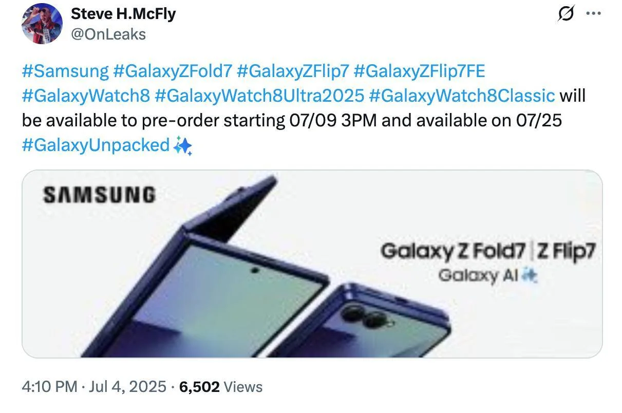 The next Unpacked event on July 9 will unveil the Galaxy Z Fold 7, Z Flip 7, Z Flip 7 FE, and Galaxy Watch 8 series. Recent leaks suggest that these devices will go on sale earlier than previously rumored, with pre-orders starting on the same day at 3 PM and shipping commencing on July 25.