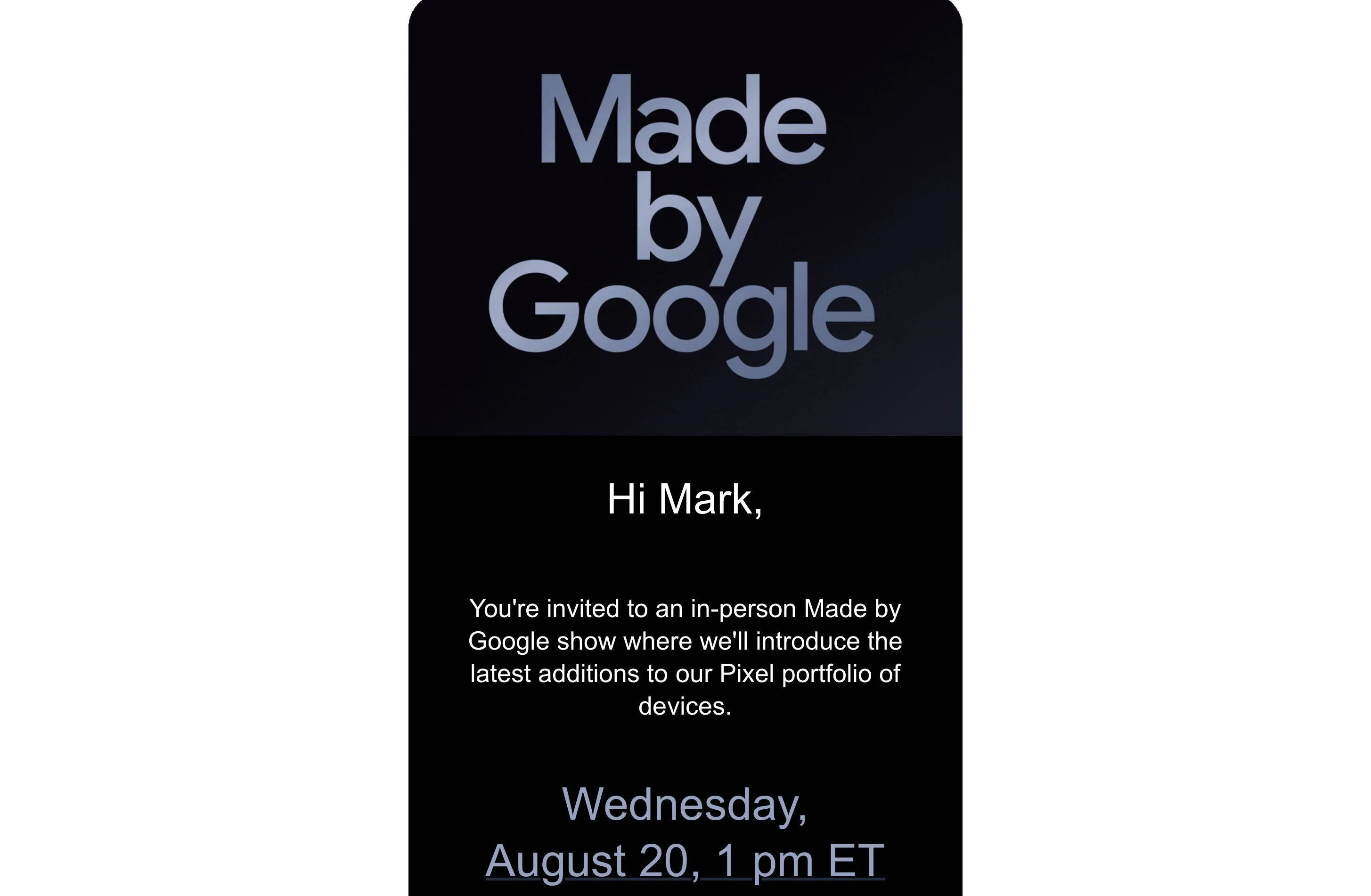 Official Pixel 10 invite. | Image Credit - Mark Gurman