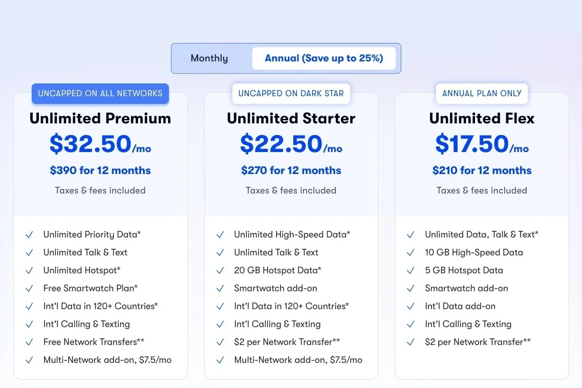 U.S. Mobile has just announced that their Unlimited Premium plan now includes unlimited high-speed data on all three networks - Warp, Light Speed, and Dark Star. This new feature comes with no 100 GB soft cap and no additional cost to customers. With this update, U.S. Mobile customers can enjoy seamless, uninterrupted data usage on any of the available networks.