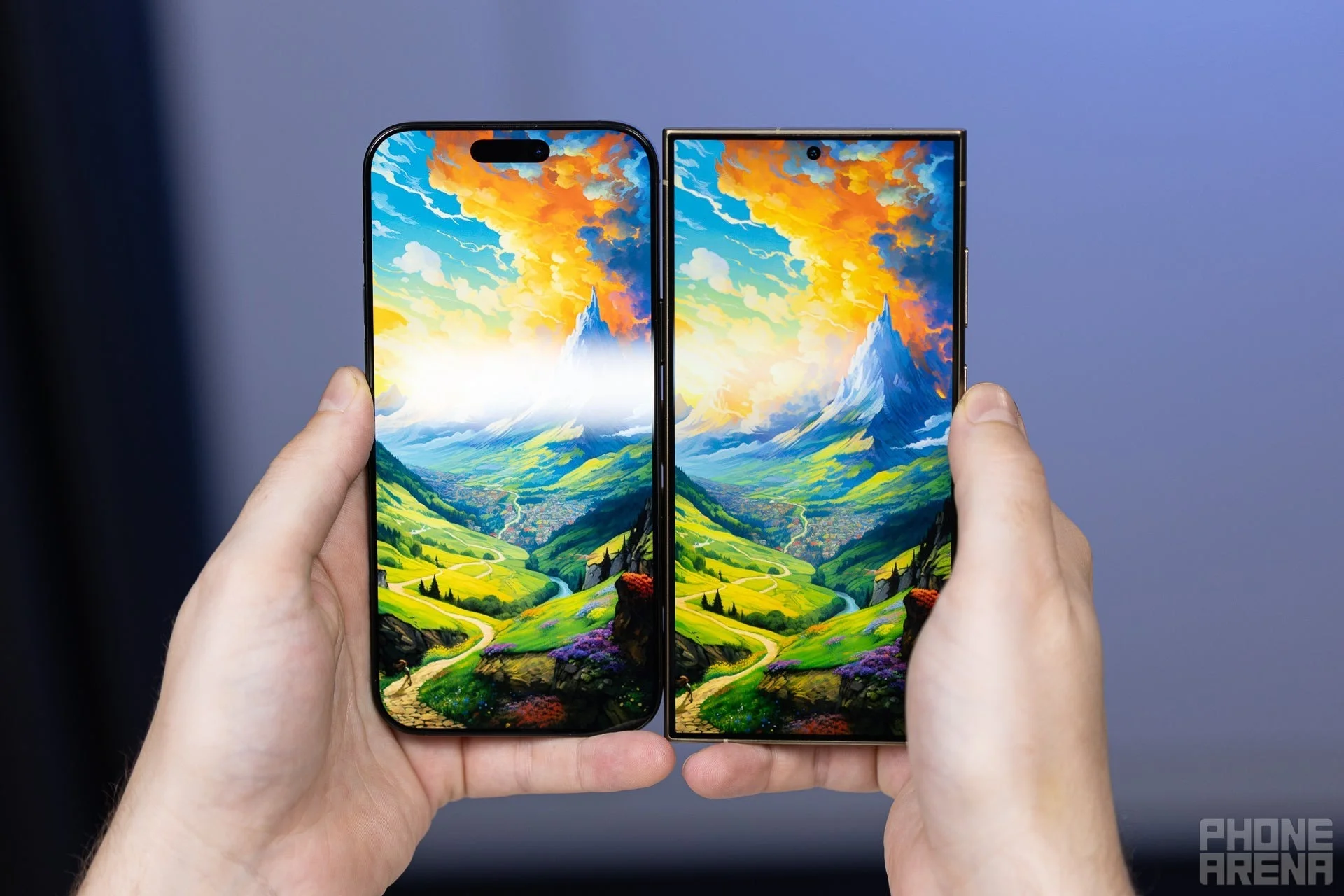 iPhone 16 Pro Max vs S24 Ultra, notice the reduced reflection and visibility behind it (Image credit - PhoneArena)