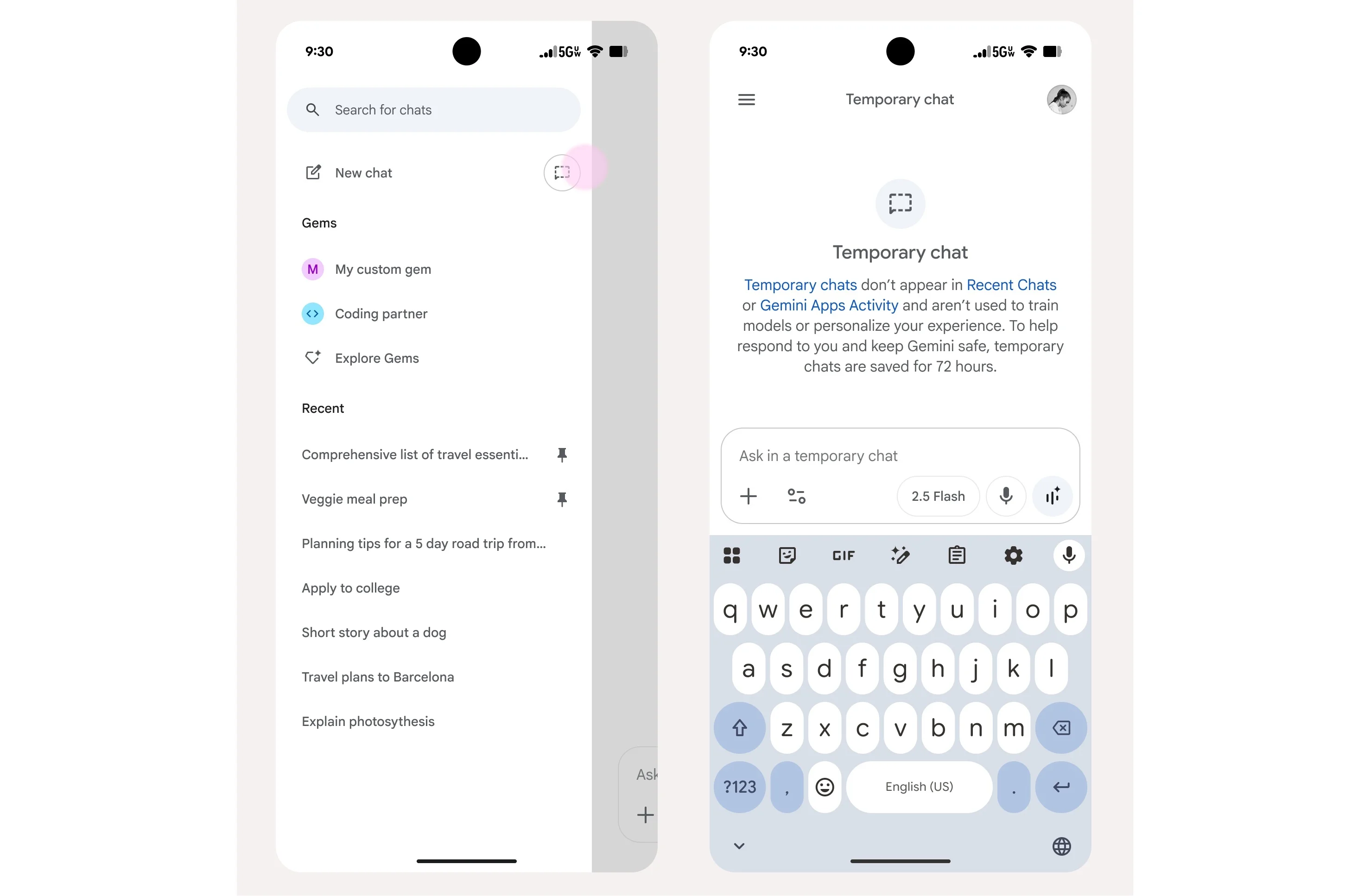 The update also introduces "Temporary Chat," allowing users to engage in private conversations that are not stored in Gemini Apps Activity or used to train Google's AI models. These chats are automatically deleted after 72 hours, providing a secure platform for discussing sensitive topics.