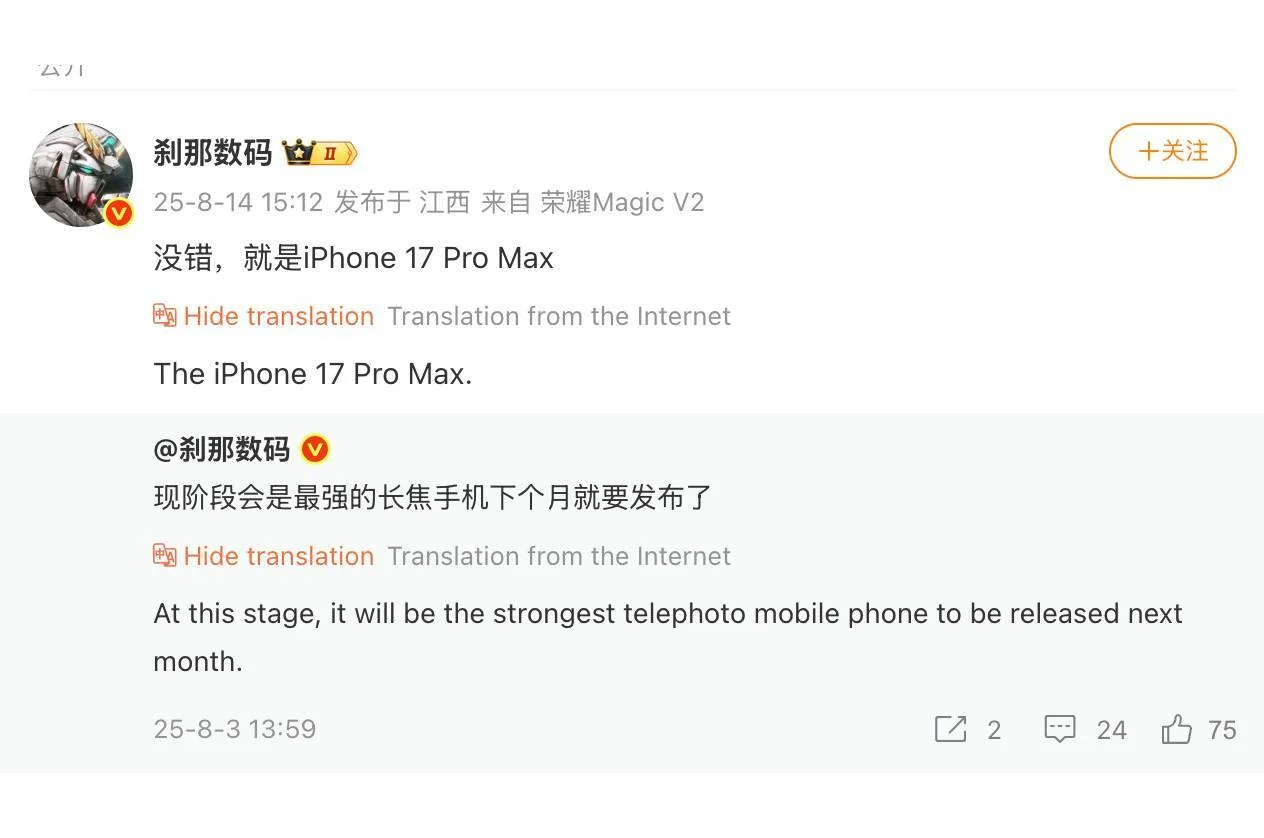 Instant Digital has added credibility to these speculations, suggesting on Weibo that the iPhone 17 Pro Max will boast a telephoto camera that surpasses all others in the market. Reports indicate that the iPhone 17 Pro Max's telephoto camera will feature moving elements, enabling multiple focal lengths and seamless switching between 5× and 8× optical zoom.
