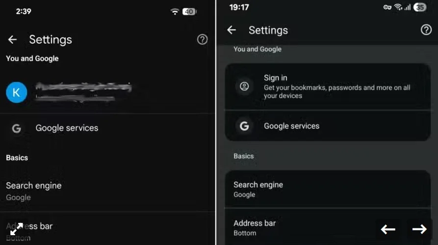 Material 3 redesign for the Chrome settings page in Android. | Image credit-Android Police