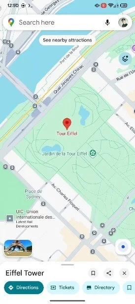 The display of information about a specific location on Google Maps is getting an update, with options like directions, ticket information, and more now located at the bottom of the location's details page for easier access.