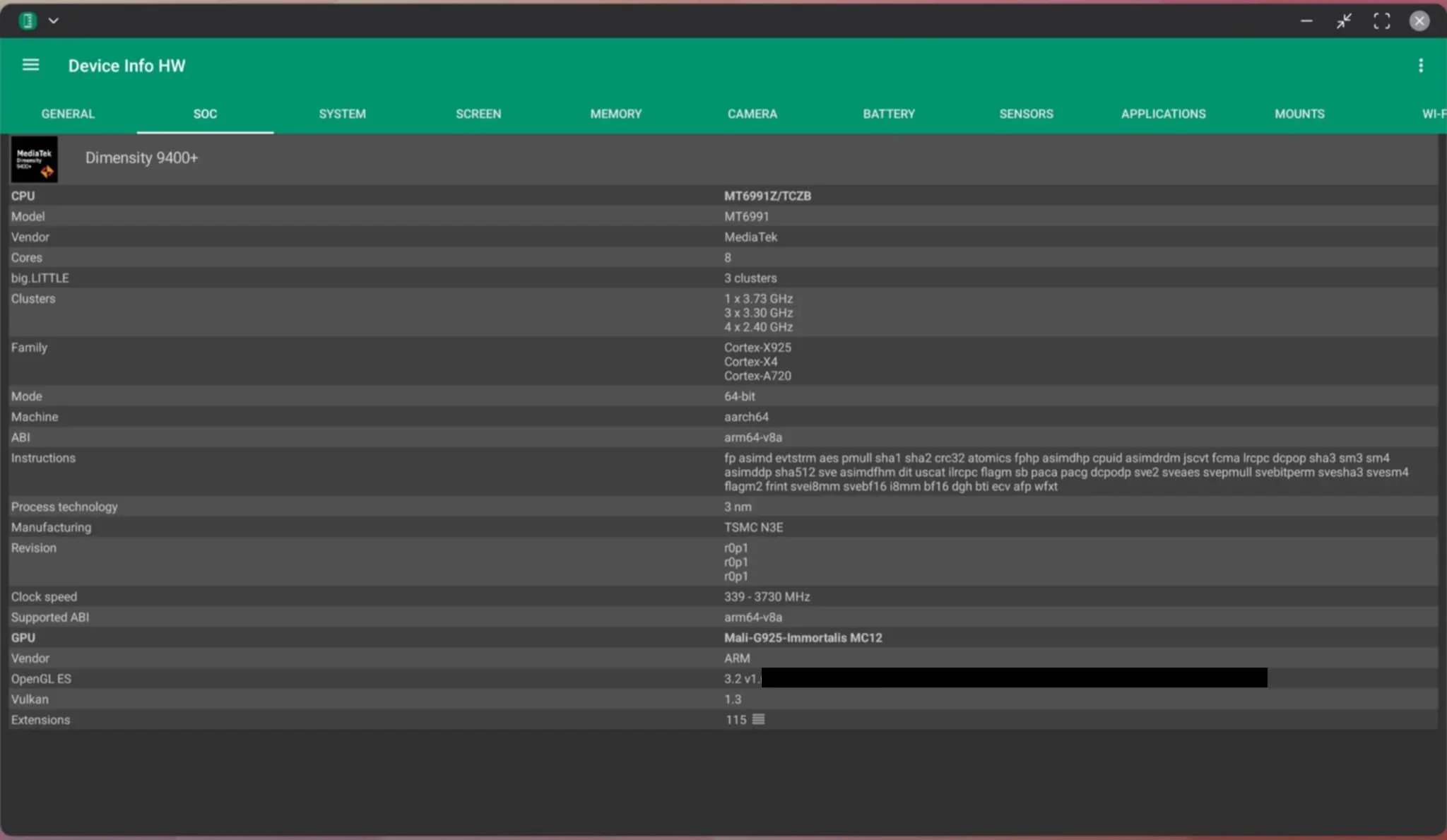 Samsung recently leaked benchmark results for its upcoming Galaxy Tab S11 Ultra, showcasing significant improvements in hardware performance. The tests, conducted by Greek outlet Techmaniacs, revealed a Cortex-X925 core clocked at 3.73 GHz, surpassing the original Dimensity 9400. The Device Info HW app also unveiled other key specs of the device.