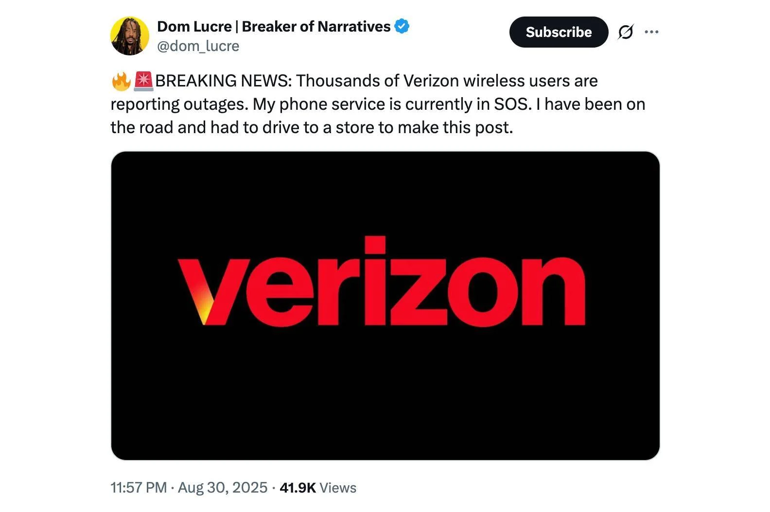 Reports indicate that a significant number of Verizon customers are currently without service.