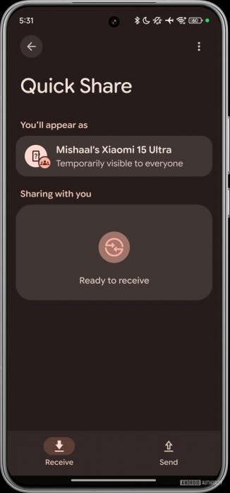 With the latest update, users can easily switch between the "Send" and "Receive" modes within Quick Share, streamlining the sharing process. The "Receive" mode now prominently displays the user's device name, making it simpler to accept incoming file requests. On the other hand, the "Send" tab now features a file picker that enables users to select and send multiple files of different formats, with a preview option available before sending.