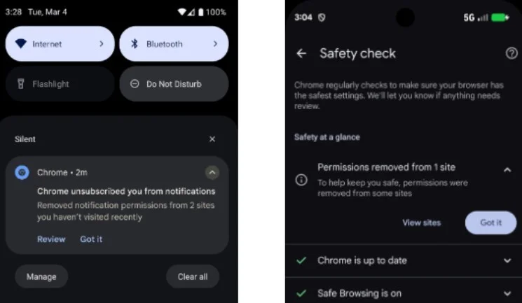 When Chrome detects websites that bombard users with notifications and have low interaction rates, it will automatically unsubscribe users from receiving notifications from those sites. Users can restore permissions by visiting the site or going to Settings > Safety Check. This feature aims to declutter notifications and provide a more streamlined browsing experience.