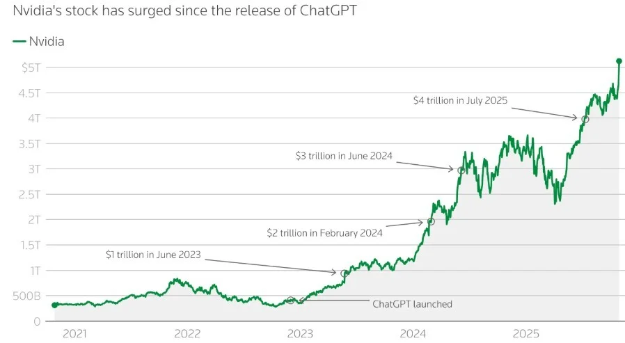 Nvidia's groundbreaking journey to a $5 trillion valuation - Image credit: LSEG