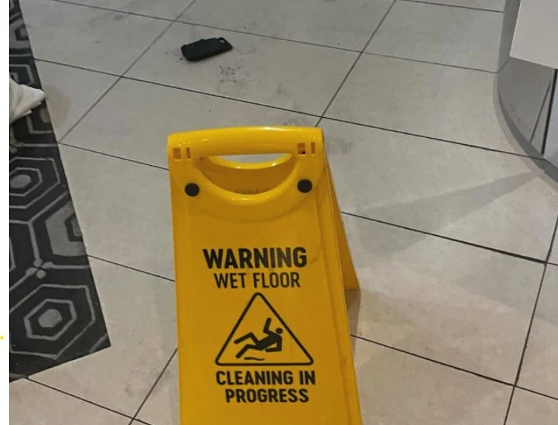 A power bank that exploded at a Melbourne airport lounge is seen on the floor after the incident. Image credit: leannetonkes