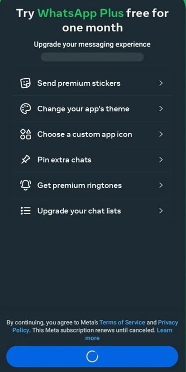 WhatsApp Plus subscription prompt. | Image by @mattnavarra on Threads